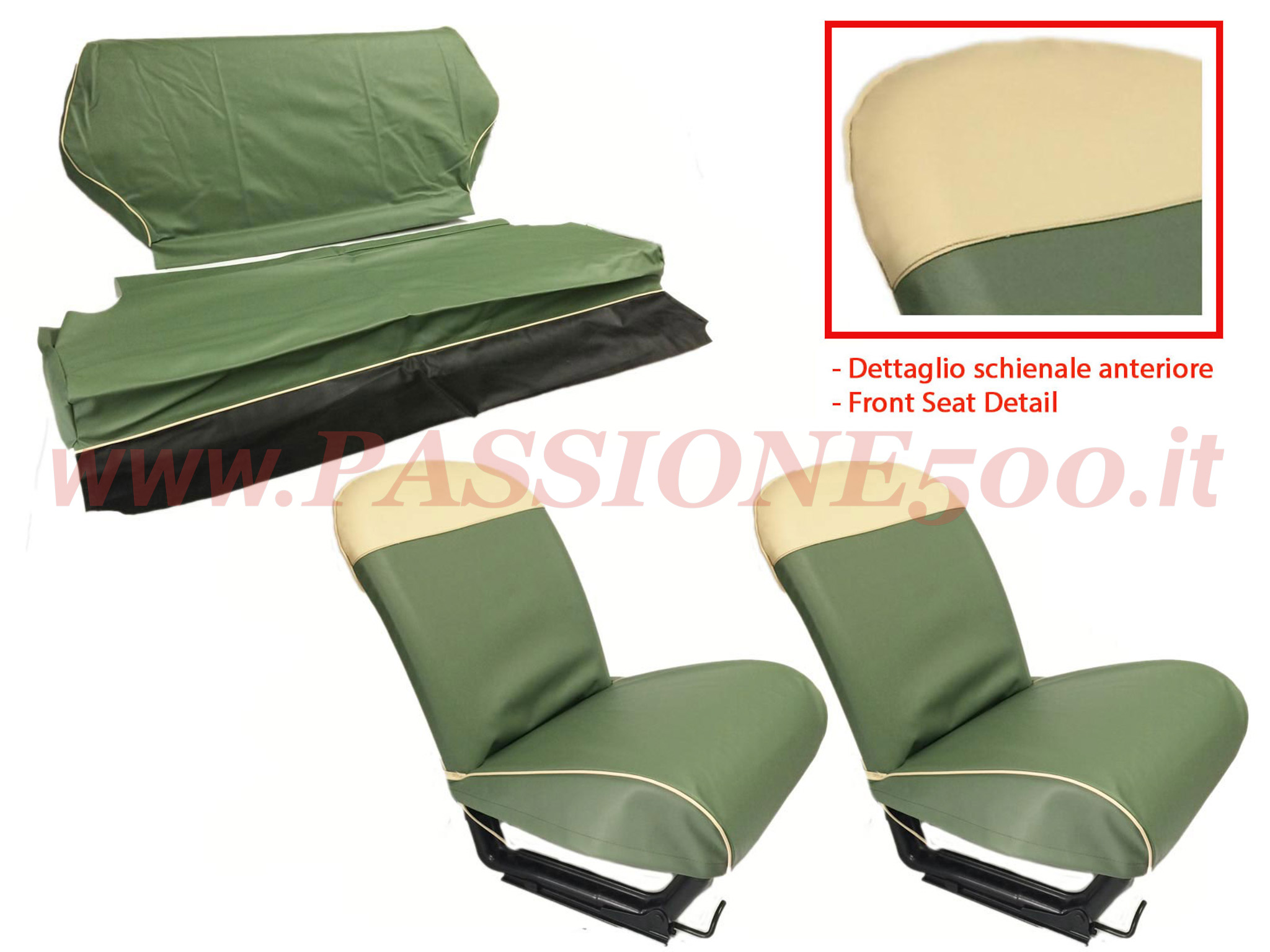 *Kompletter Satz Sitzbezüge Kunstleder – Grün Farbe – Fiat 500 D (von September 1963)