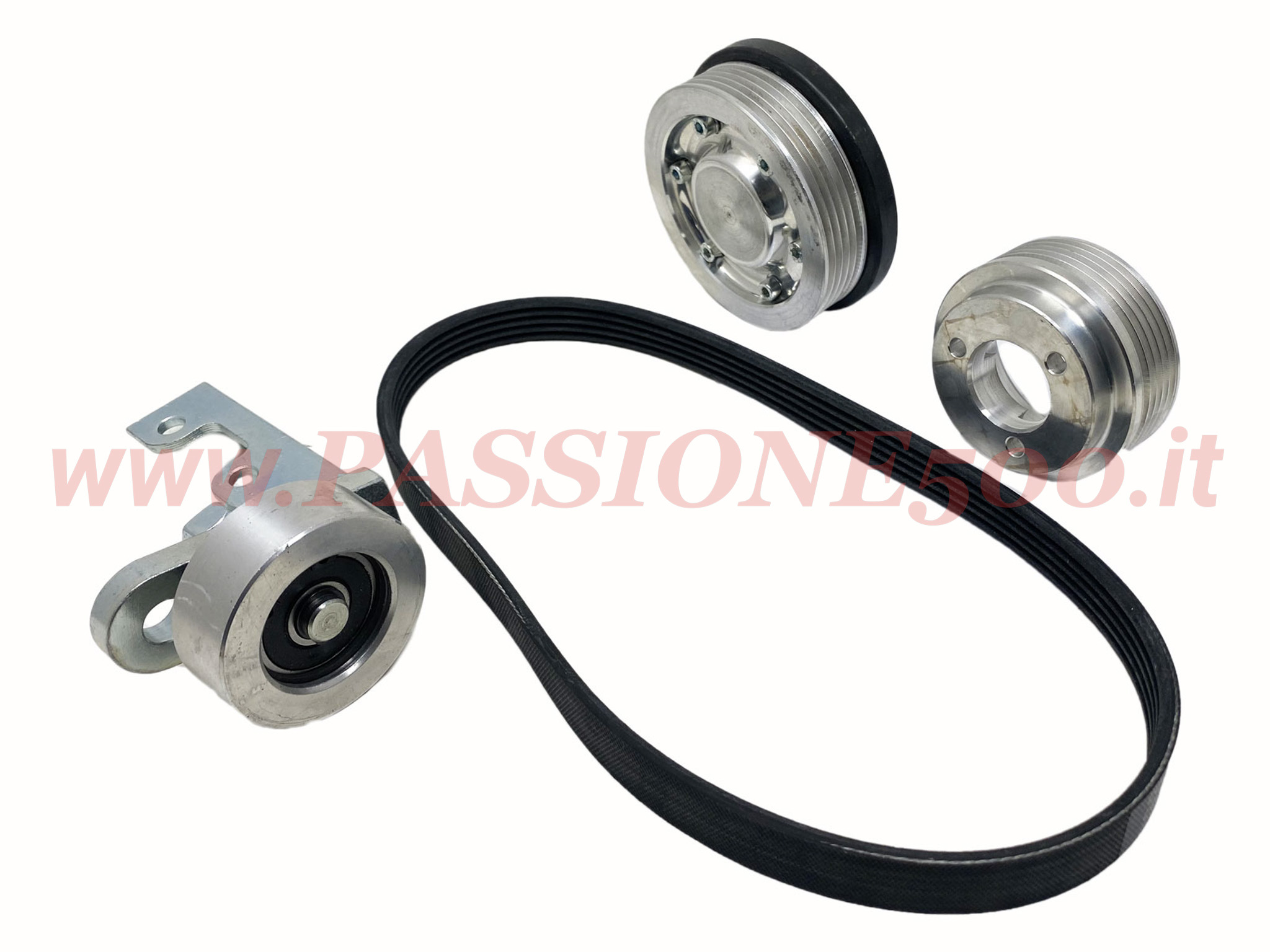*Alternator Alloy Pulley Kit with Poly-V Belt and Tensioner Fiat 500 N – D – F – L – R