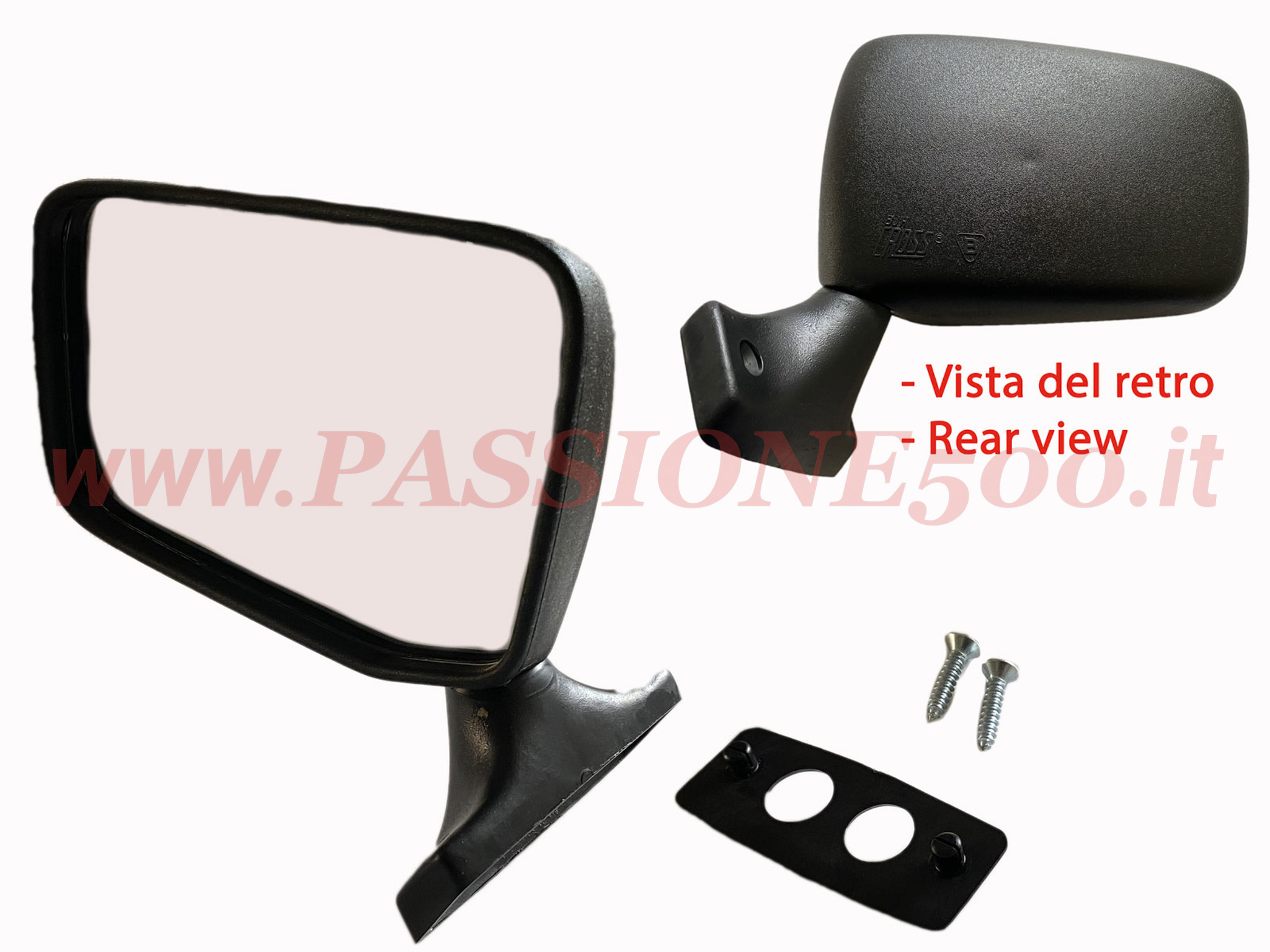 *Specchio Retrovisore Esterno Sinistro In Plastica Nera con Attacco a Vite Fiat 126 FSM