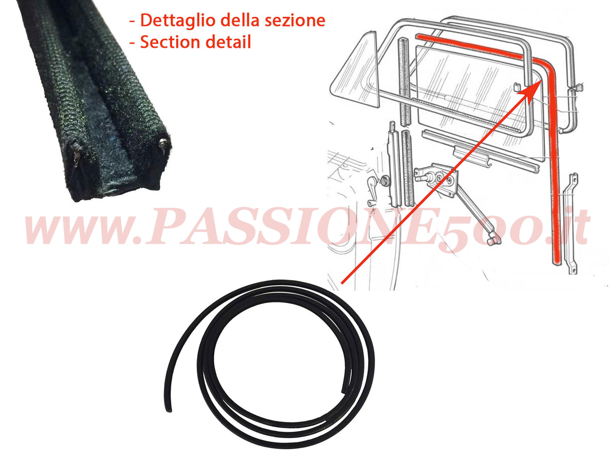 *Canalino Guarnizione Scorrivetro per Vetro Scendente Porta – lato Superiore e Posteriore – Fiat 500