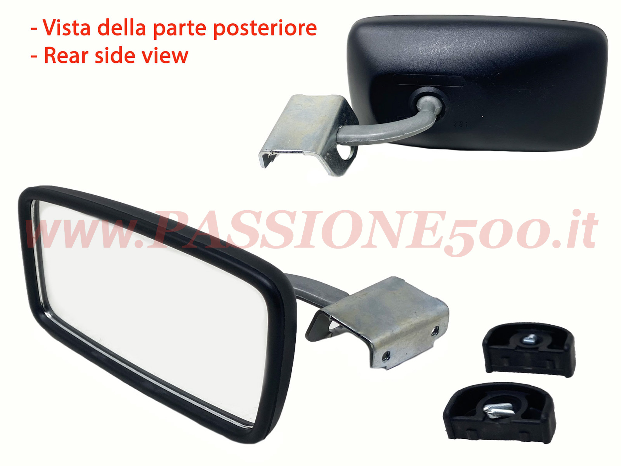 *Specchio Retrovisore Esterno Rettangolare in Plastica con Attacco a Morsetto Fiat 500