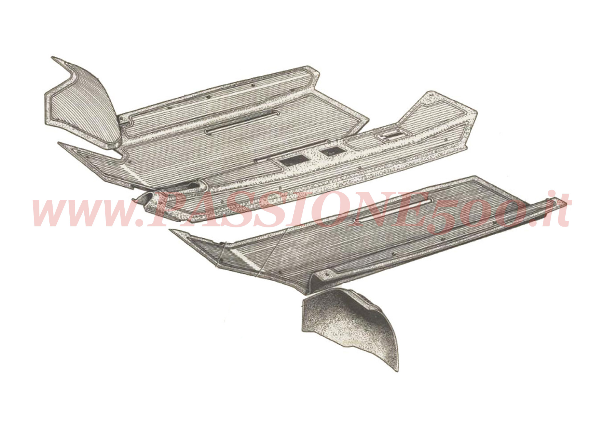 *Serie Tappeti Neri in Gomma per Rivestimento Abitacolo Fiat 500 N (fino a n.° per ricambi nr.058004)